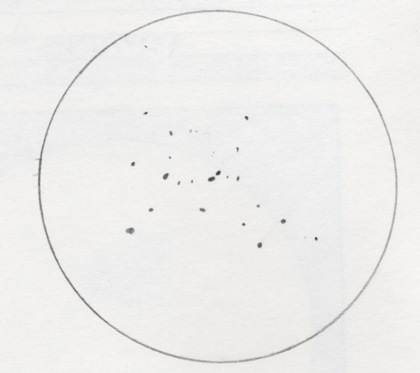 M7: (Ptolemy Cluster, NGC 6475) Sketch of M7 can be found at Messier Catalogue - M007 (NGC 6475) - August 14, 2015 |